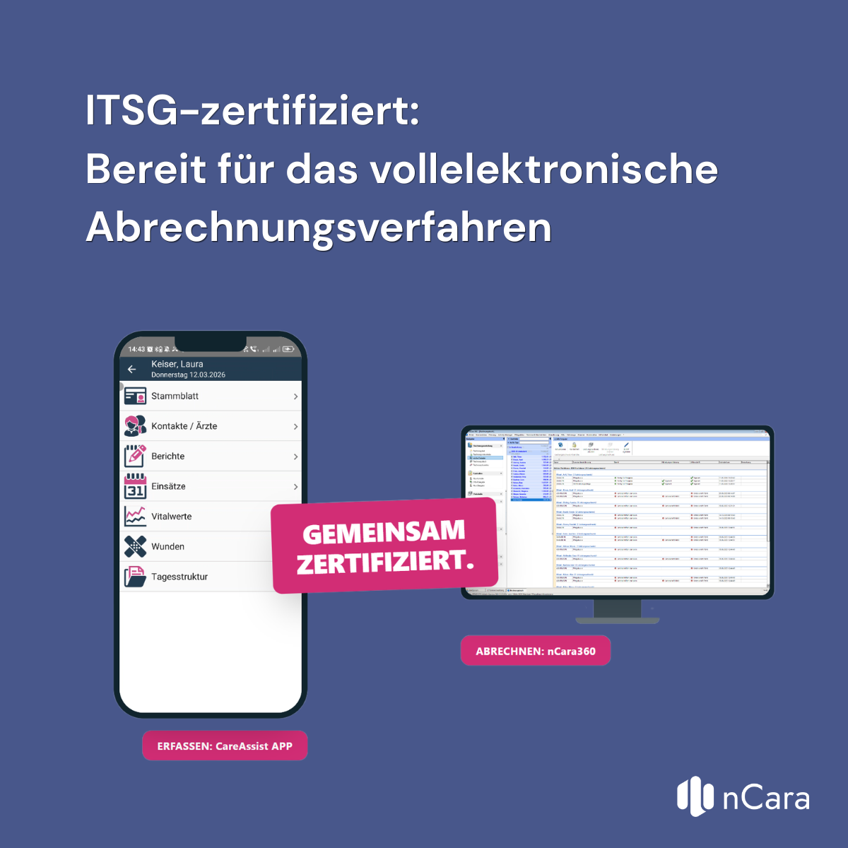 Geprüft, zertifiziert, bereit – nCara360 & CareAssist APP erfüllen alle Anforderungen für den eLNW